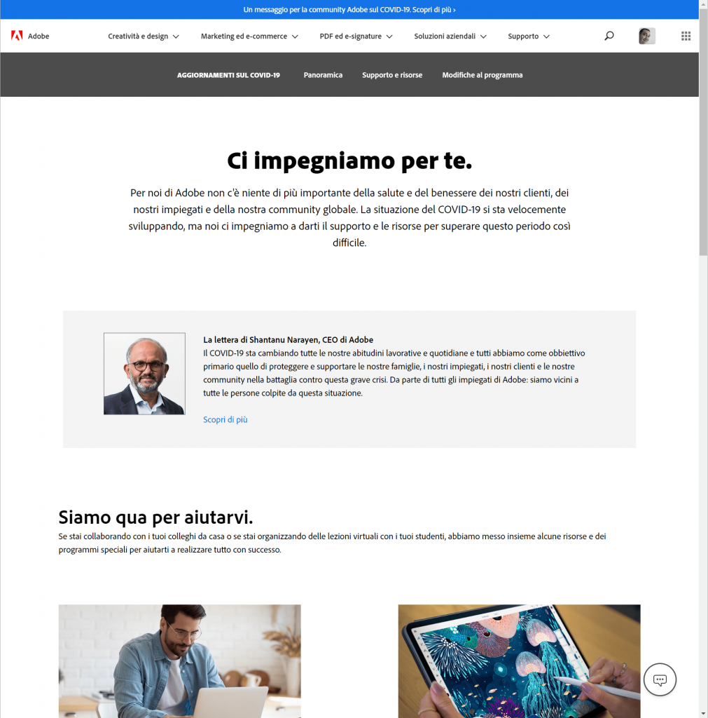 Anche Adobe, come molte altre grandi aziende tech, si sta impegnando a supportare i propri utenti, e più in generale i creativi di tutto il mondo, per superare questo periodo di forti incertezze dovute dalla pandemia da COVID-19.