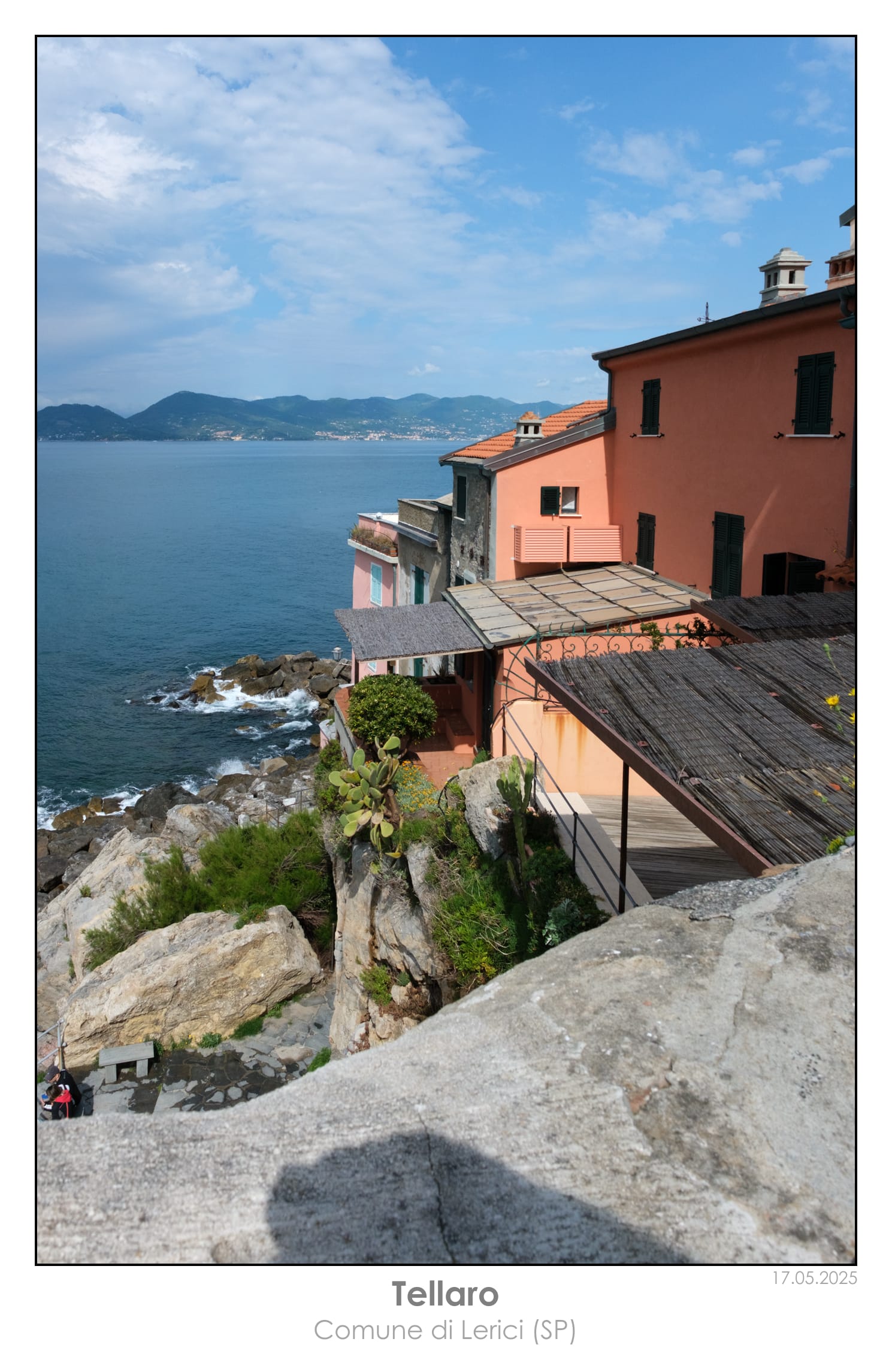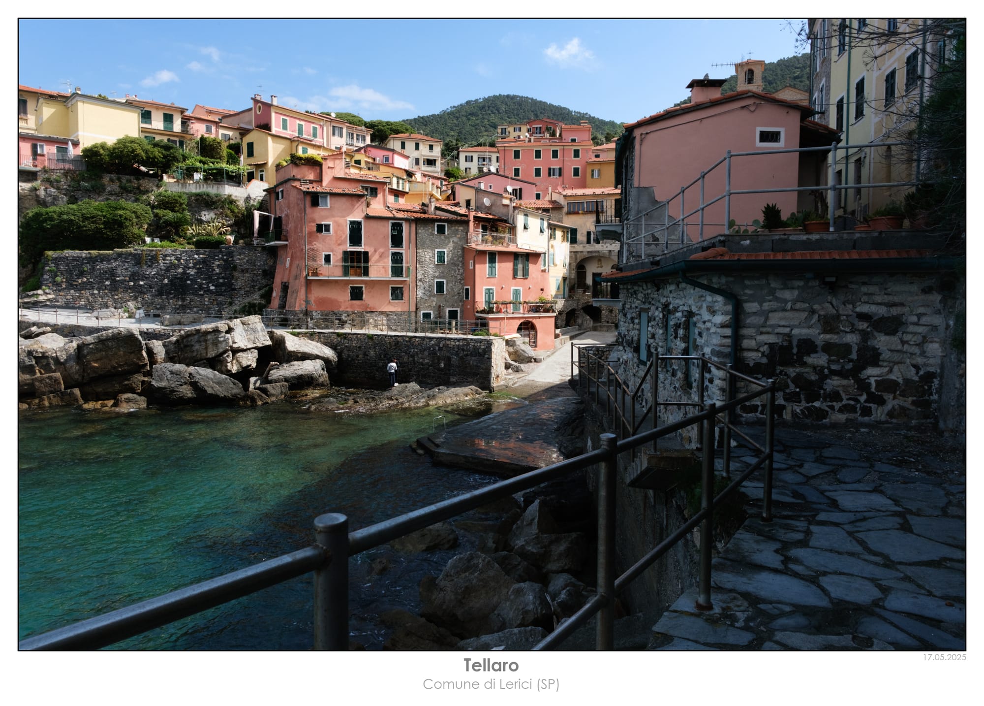 Il tempo scorre via veloce, così come il sentiero, e ben presto arriviamo a Tellaro[3] che ci accoglie con i colori vivaci delle sue case, il blu del mare e i vicoli stretti che si inerpicano tra le abitazioni.