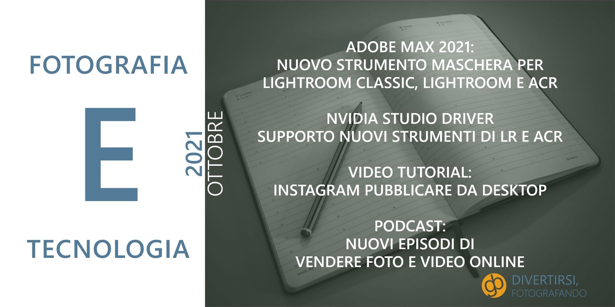 Le novità da Adobe MAX 2021 per Lightroom Classic, Lightroom e ACR | Nvidia Studio Driver supporto nuove versioni Lightroom e ACR | Video tutorial per Instagram | Nuovi episodi del podcast di Daniele Carrer