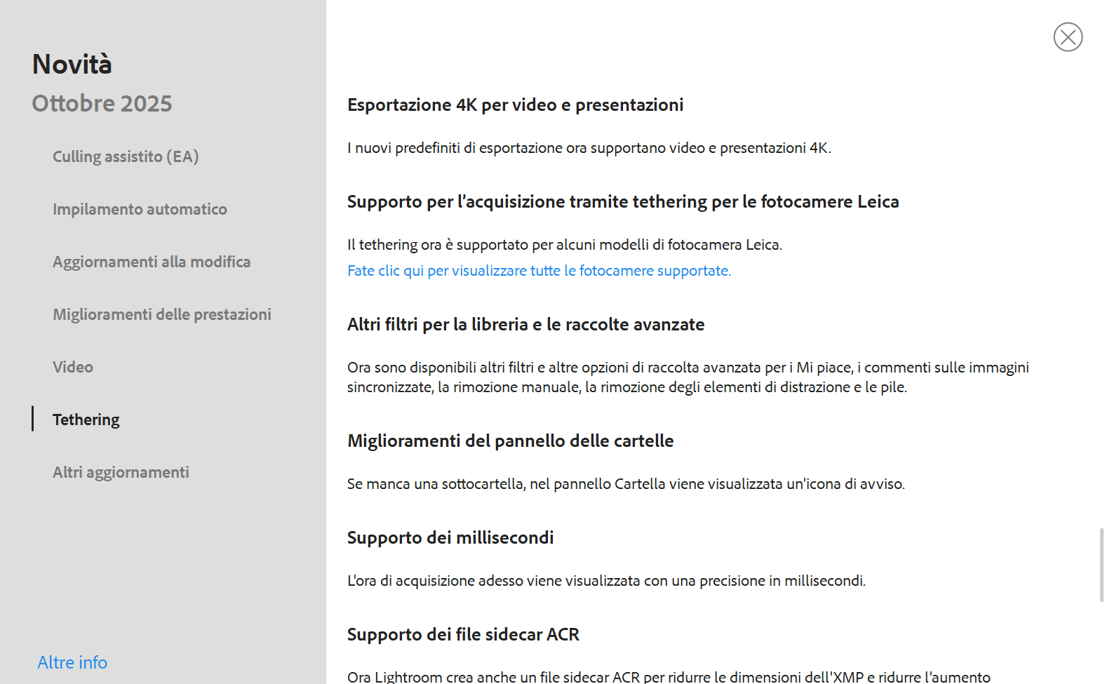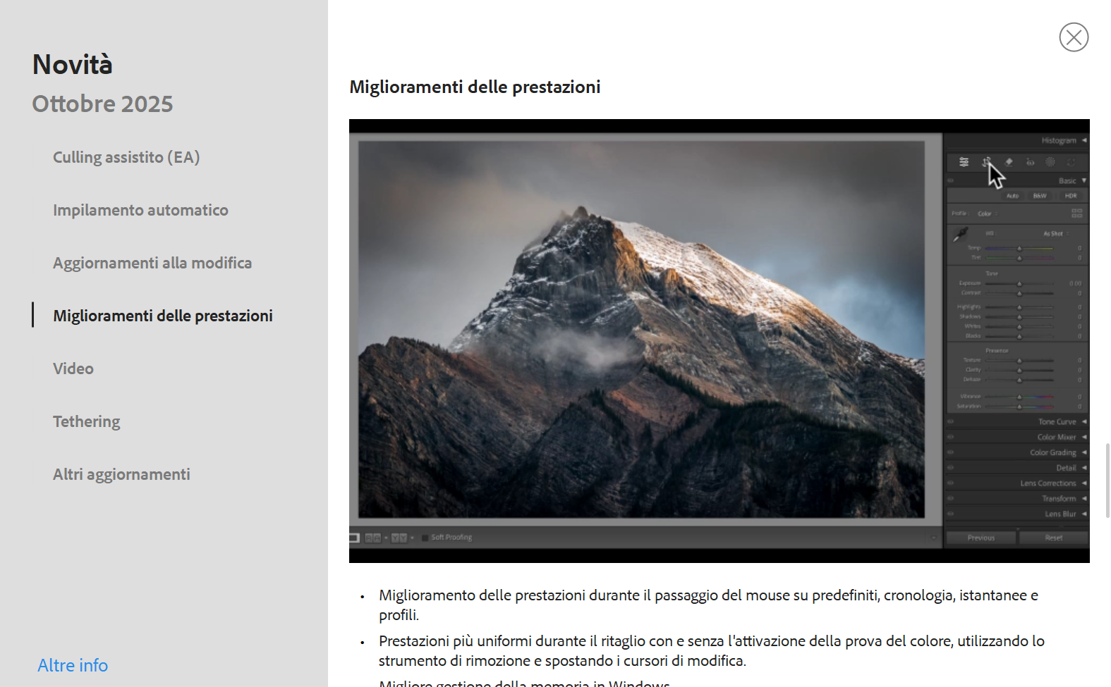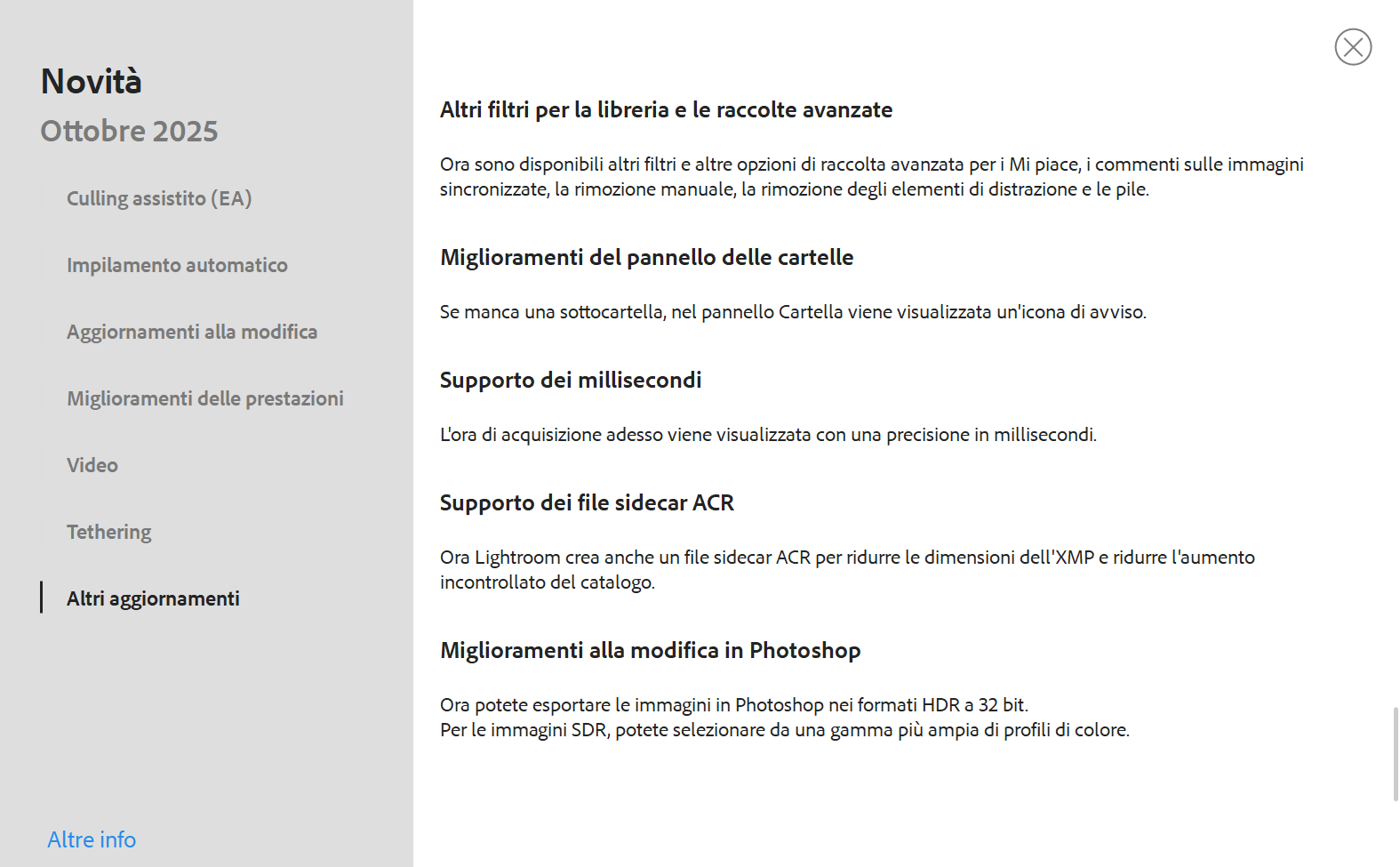 Per approfondire gli aggiornamenti introdotti ti consiglio la pagina Adobe con le novità di Lightroom Classic.